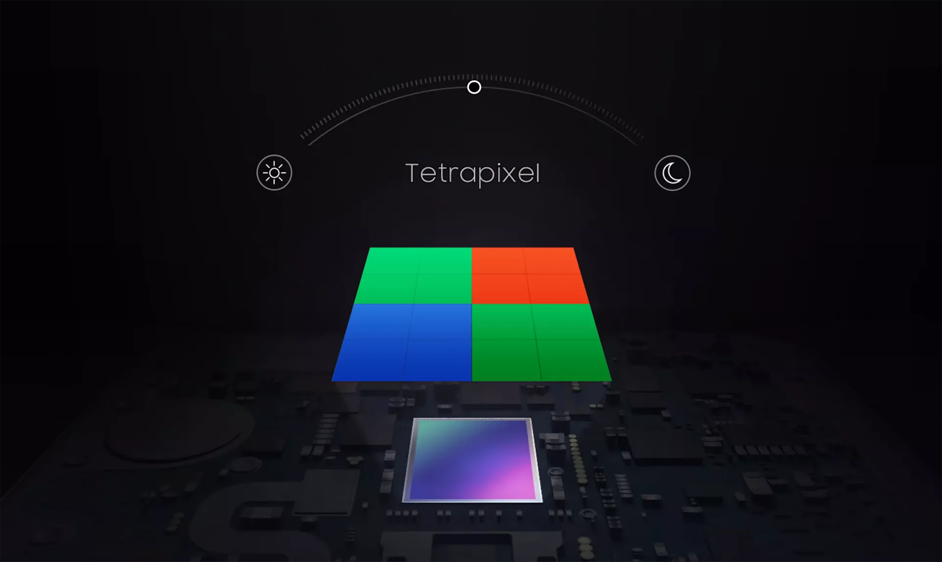 В зависимости от освещённости сцены, сенсор может работать в режиме 4 пикселя в 1, что позволяет получить больше света для каждого отдельно пикселя.